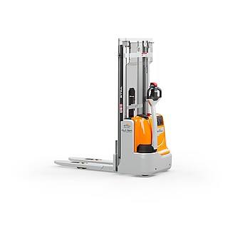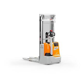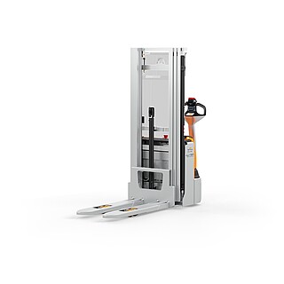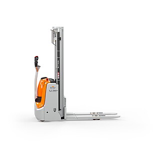 Con lo speciale timone OptiSpeed, lo stoccatore EXV è un vero gioiello. La velocità di questo assistente di magazzino a guida manuale si adatta automaticamente alla distanza tra l'operatore e il carrello elevatore. Degna di nota è l'ergonomia del timone: il posizionamento degli elementi di comando è stato studiato con grande attenzione. Consentono il comando con una sola mano a tutti gli operatori, a prescindere che siano destrimani o mancini e abbiano mani grandi o piccole. Il display a LED sulla testa del timone consente poi al conducente di tenere sotto controllo tutti i dati importanti sul carrello. Per giunta, la stabilità del carrello in pendenza e la sua capacità diarrestarsi in automatico quando il braccio del timone viene rilasciato sono particolarmente convincenti. La sofisticata ammortizzazione che rallenta gradualmente la velocità di abbassamento prima del contatto col terreno protegge le merci durante l'immagazzinamento. Con il modello EXV è possibile stoccare le merci risparmiando spazio e recuperarle più facilmente. Con l'elevata portata residua e una manovrabilità eccezionale, questo carrello compatto non ha eguali nella movimentazione rapida e sicura di grandi volumi di merci con carrello manuale in spazi ristretti, nell'area di prestoccaggio o sugli scaffali.
