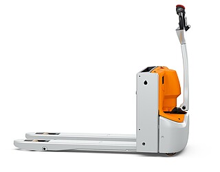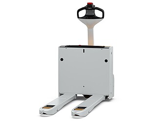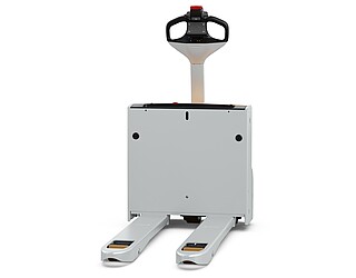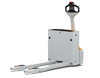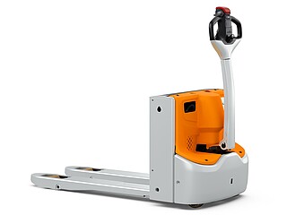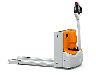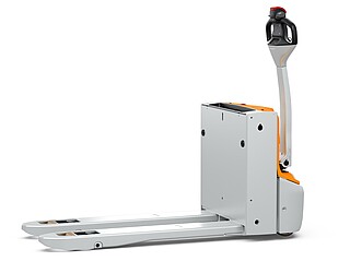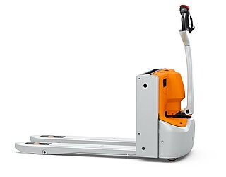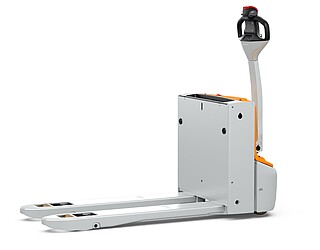 Fits in even the smallest of spaces. Or inside a lorry. The EXH 14 pedestrian low lift pallet truck is so compact and agile that you can manoeuvre it effortlessly around the loading area of a lorry. If necessary, even with the tiller raised – thanks to the intelligently positioned controls. The ergonomics really come into their own when the tiller is in the horizontal position: the extra-long tiller protects your feet while enabling you to maintain a back-friendly posture, and the LED display in the tiller head provides you with all relevant vehicle information at a glance. In particular, the low Ast makes the EXH 14 a manoeuvring marvel in the tightest of spaces. It is robust, powerful on the ramp, boasts excellent lateral stability and performs admirably even in industrial environments. This is also true when used away from home. With a chassis height of just 740 mm, the EXH 14 can be easily transported in a lorry. Its standard 15 A on-board charger and optional lithium-ion technology ensure it is always ready to go.
